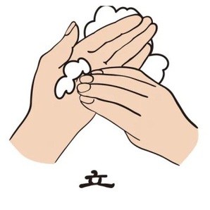 6、立: 洗指尖,弯曲一手的手指关节,指尖合拢,然后放在另一手掌中旋转揉搓,双手交换进行。