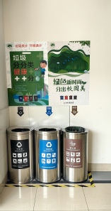 园区内垃圾分类集中投放点,投放时间是7:30-16:30,请在规定的时间投放,定时投放垃圾可以减少异味和害虫、提高垃圾分类效率、便于管理和清理、减少环境污染同时也能促进校园和谐。每个人都应该养成垃圾分类和定时投放的好习惯,共同营造一个洁净、美丽的学习生活环境。