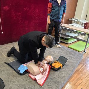 实操环节中,在授课老师的细心指导下大家完成了各个步骤的学习,并分组在教学模拟人等器材演练了心肺复苏、AED体外除颤仪的使用等救护技能,确保流程熟记于心、操作标准无误。
