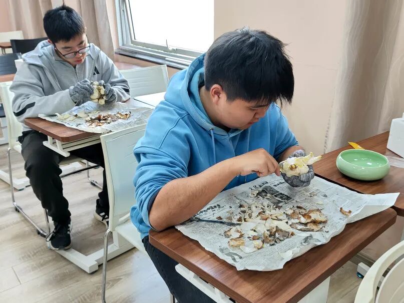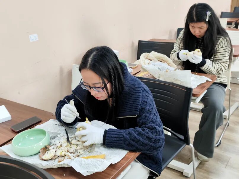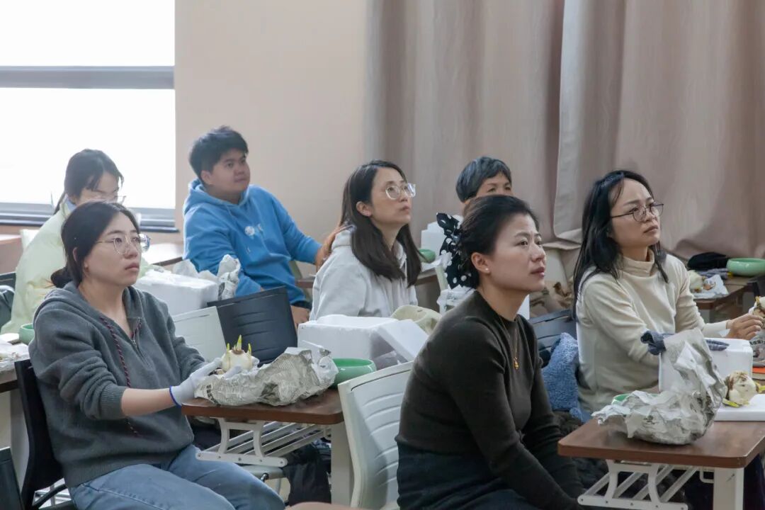 “原来雕刻水仙不仅需要技巧,更要静下心来感受鳞茎的纹理,顺着生长规律创作。”一位参与活动的同学感慨道。经过一番精心雕琢,原本朴素的水仙球茎渐渐显露出独特的雏形,每一件作品都承载着创作者的用心与创意。完成雕刻后,师生们还学习了水仙的水养技巧,从浸泡伤口、覆盖脱脂棉到调整光照角度,认真记录每一个养护要点。期待着亲手雕琢的水仙绽放芬芳……