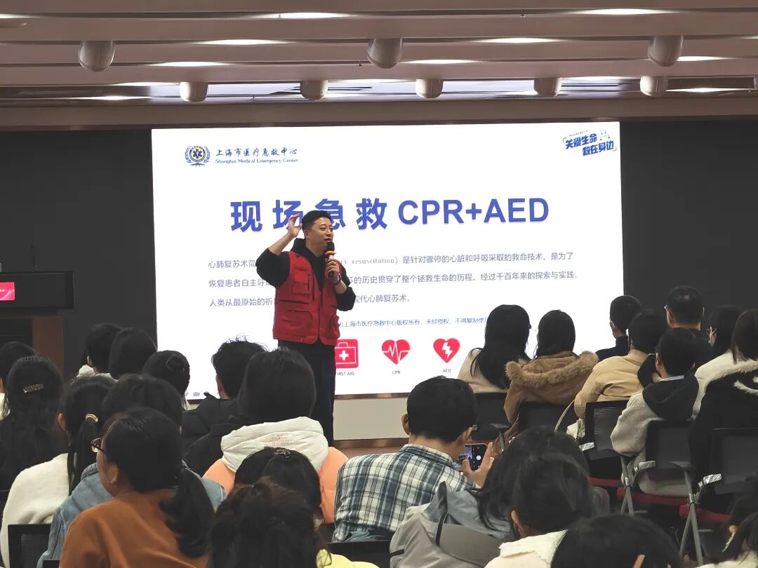 3月25日,由校门诊部主办的“解锁救命技能——心肺复苏(CPR)与自动体外除颤仪(AED)培训”在标准化大楼辅楼201举行。来自各学院部门的120余名师生员工齐聚一堂,共同学习掌握实用的急救技能。